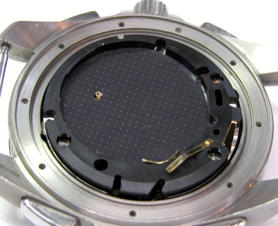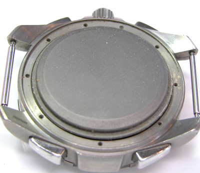 裏蓋ネジは洗浄。このネジも洗浄してツヤが出ませんからチタンの様ですね。