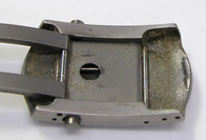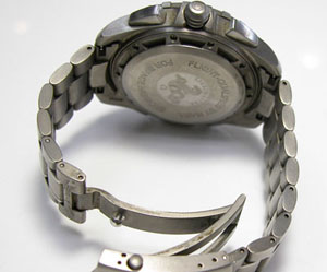 チタン無垢バンドに三つ折れプッシュバックル。