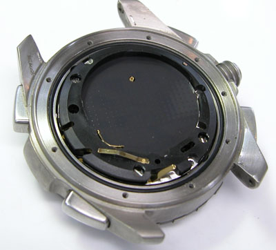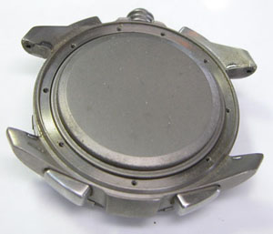裏蓋の下に薄い中蓋がありますが、これを裏蓋9本のネジで押さえ付けることでの防水機能。