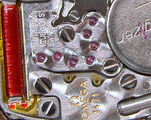スペーサーも金属ですから重厚な感じ。この輪列のルビーの数。