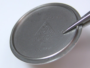 竜頭の裏側チェック。これが取り出した文字盤&ムーブメント。