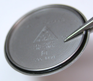 ムーブメントを戻して電池交換です。電池格納部をチェックします。