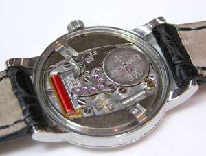 シンプルを求めた腕時計って感じですね。裏蓋は”はめ込みタイプ”でデビル独特のマークが見えます。