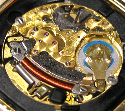 綺麗になったケースにムーブメントをもどして電池格納部をチェックします。