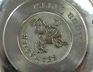 裏蓋はスクリューバックで右が裏蓋記載。