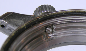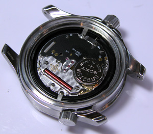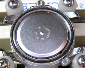 ベルトを外してチェック。以外に綺麗なものです。裏蓋はスクリューバックですが、このタイプは”3点式オープナー”で開けます。