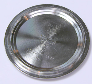 裏蓋を開けると耐磁プレートが見えます。裏蓋の裏側記載。