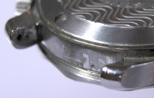 これが取り出した文字盤&ムーブメント。ギョウシェ模様が綺麗ですね。ケースの内部は綺麗です。