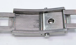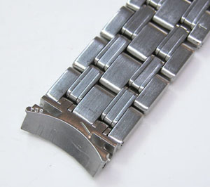 ステンレス無垢バンドに三つ折れプッシュバックル。
