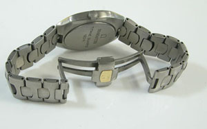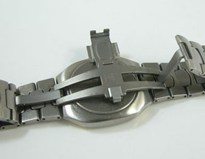 チタン無垢バンドに両開きバックル。