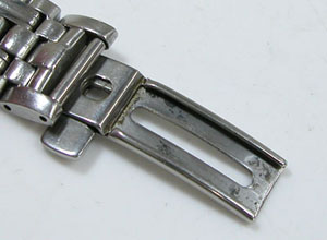 ステンレス無垢バンドに三つ折れプッシュバックル。