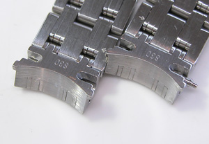 ステンレス無垢バンドに三つ折れプッシュバックル。