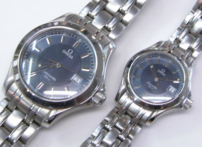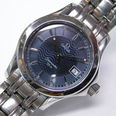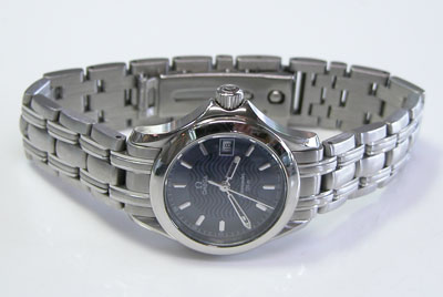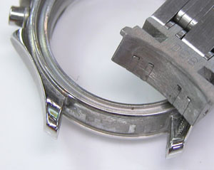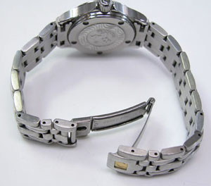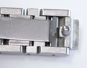 ステンレス無垢バンドに三つ折れプッシュバックル。