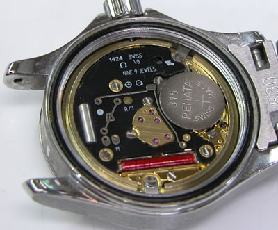 綺麗になったケースにムーブメントを戻して電池格納部をチェックします。