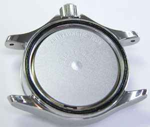 裏蓋はスクリューバックで右が裏蓋裏側記載。