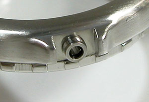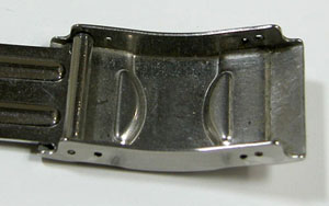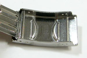 ステンレス無垢バンドに三つ折れプッシュバックル。