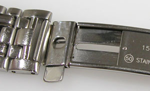ステンレス無垢バンドに三つ折れプッシュバックル。