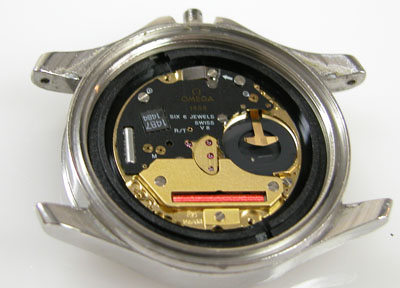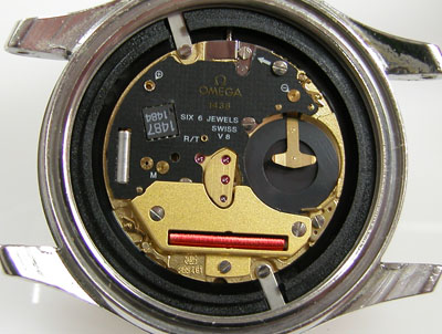 綺麗になったケースにムーブメントを戻して電池格納部をチェックします。