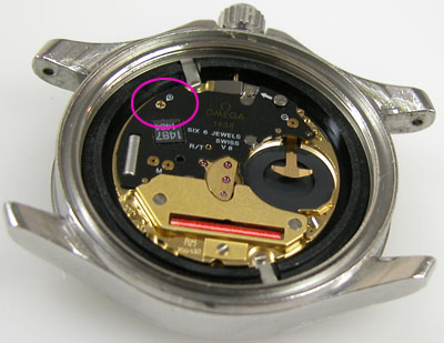 ムーブメントの回路を固定するネジが外れており。他のネジも確認すれば緩んでおります。