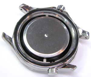 裏蓋を開けると金属プレートがムーブメントを覆っています。