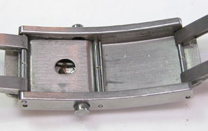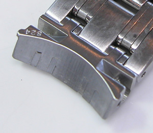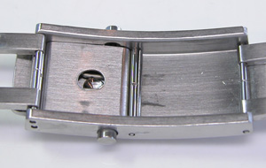 ステンレス無垢バンドに三つ折れプッシュバックル。