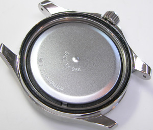 裏蓋を開けると耐磁プレートがムーブメントを覆っています。
