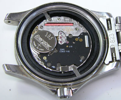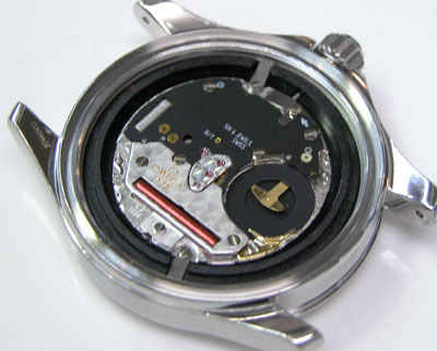 綺麗になったケースにムーブメントを戻して電池格納部をチェックします。