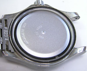裏蓋を開けると耐磁プレートがムーブメントを覆っています。