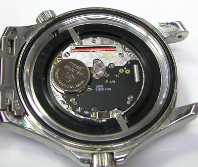 綺麗になったケースにムーブメントを戻して電池格納部をチェックします。