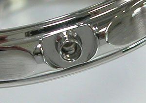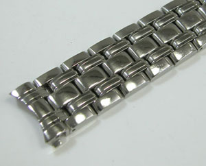 ステンレス無垢バンドに三つ折れプッシュバックル。