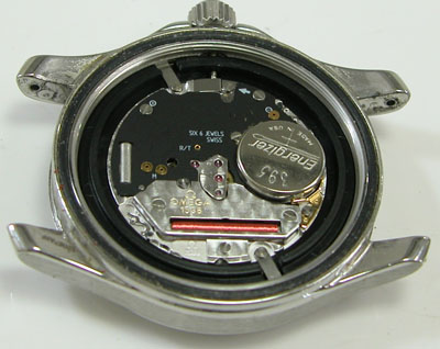 綺麗になったケースにムーブメントを戻して電池格納部をチェックします。