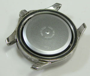 裏蓋を開けると耐磁プレートがムーブメントを覆っています。