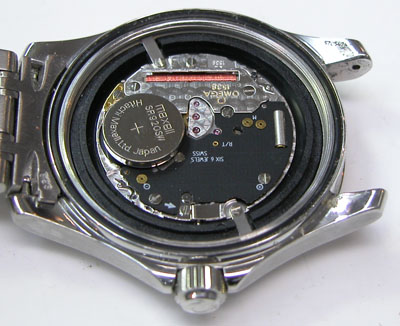 綺麗になったケースにムーブメントを戻して電池格納部をチェックします。