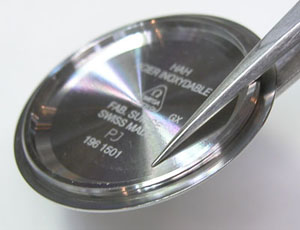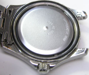 裏蓋はスクリューバックで右が裏蓋記載。