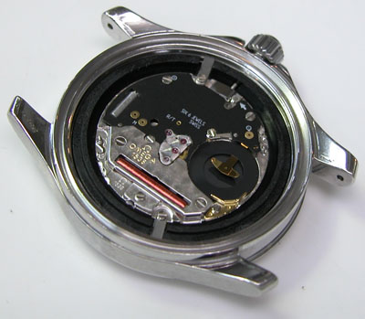 綺麗になったケースにムーブメントを戻して電池格納部をチェックします。