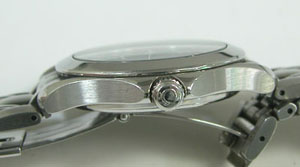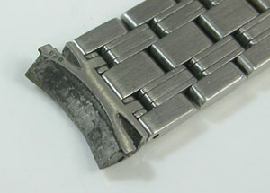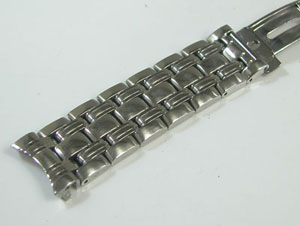 ステンレス無垢バンドに三つ折れプッシュバックル。