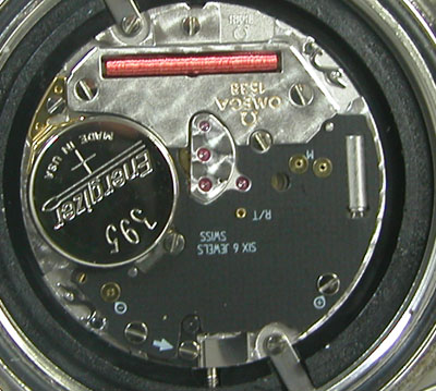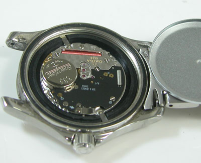 綺麗になったケースにムーブメントを戻して電池格納部をチェックします。
