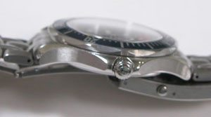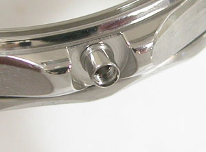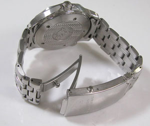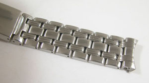 ステンレス無垢バンドに三つ折れプッシュバックル。