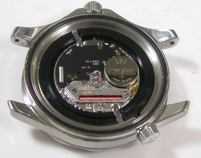 綺麗になったケースにムーブメントを戻して電池格納部をチェックします。