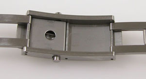 ステンレス無垢バンドに三つ折れダブルロック。