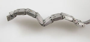 ラグ部のバネ棒が片方しか外れません。コマのピンが錆びているのか全体的にコマの動きが堅く。これでは装着感が悪いでしょう。