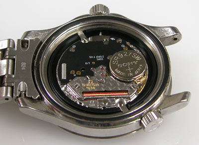 綺麗になったケースにムーブメントを戻して電池格納部をチェックします。