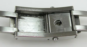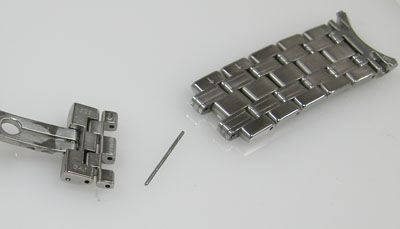 ステンレス無垢バンドに三つ折れプッシュバックル。