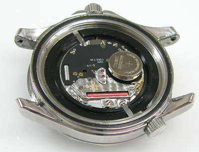 綺麗になったケースにムーブメントを戻して電池格納部をチェックします。