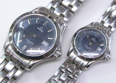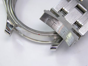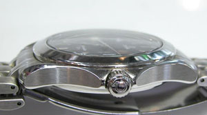 ステンレス無垢バンドに三つ折れプッシュバックル。