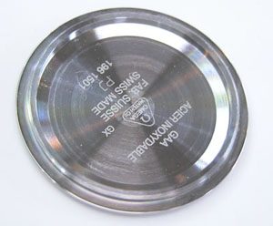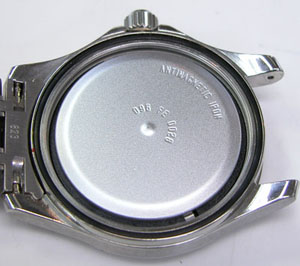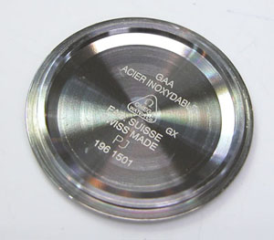 裏蓋はスクリューバックで右が裏蓋裏側記載。