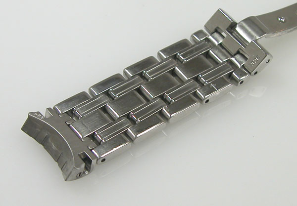 ステンレス無垢バンドに三つ折れプッシュバックル。