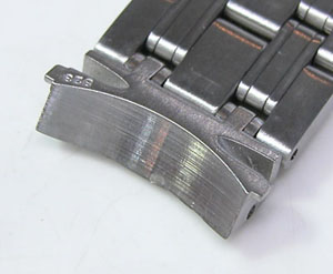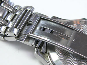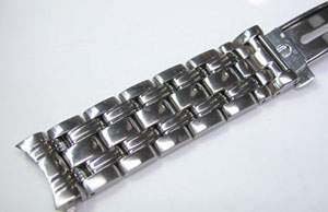 ステンレス無垢バンドに三つ折れプッシュバックル。