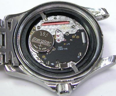 綺麗になったケースにムーブメントを戻して電池格納部をチェックします。