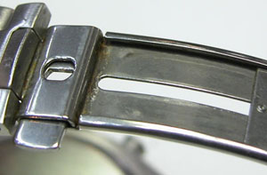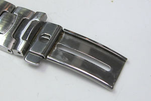 チタン無垢バンドに三つ折れプッシュバックル。